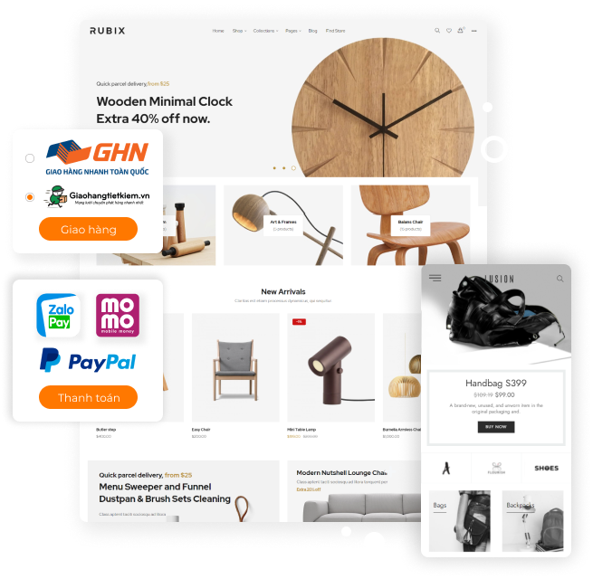 Sở hữu ngay website bán hàng online nhanh chóng và tiết kiệm. Hàng trăm giao diện thiết kế website đẹp đáp ứng mọi nhu cầu ngành nghề khác nhau